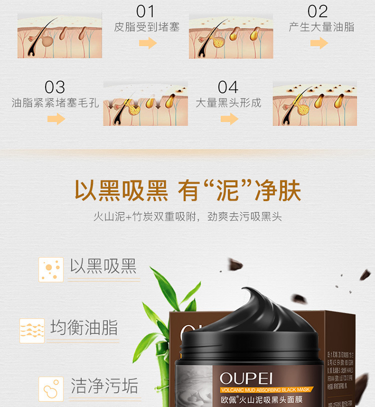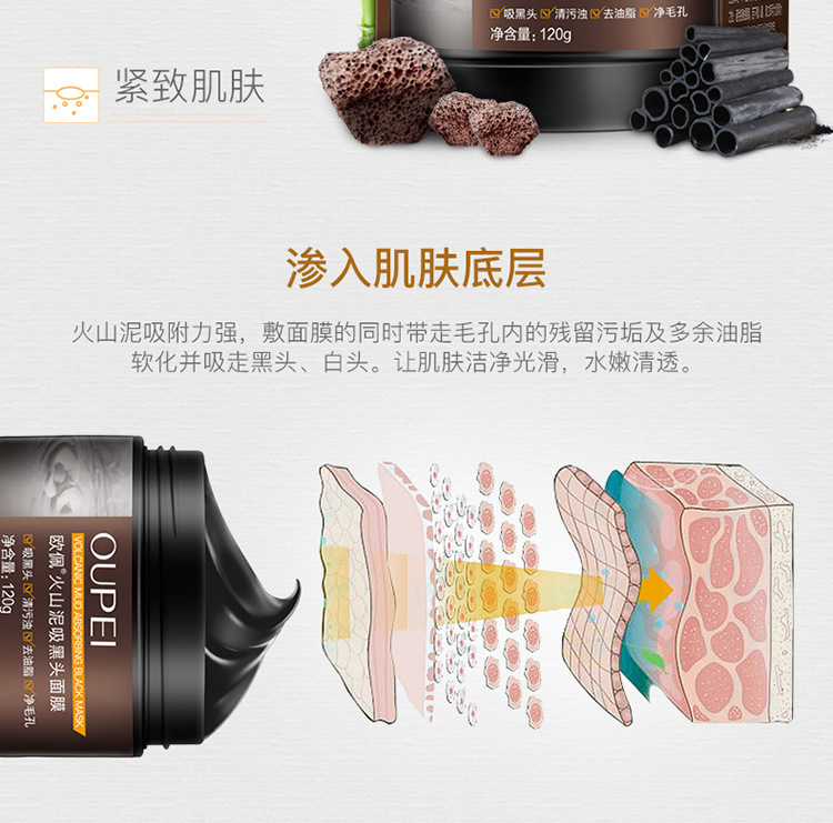 2瓶火山泥去黑头面膜撕拉矿物泥粉刺鼻膜清洁面膜