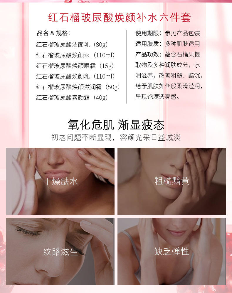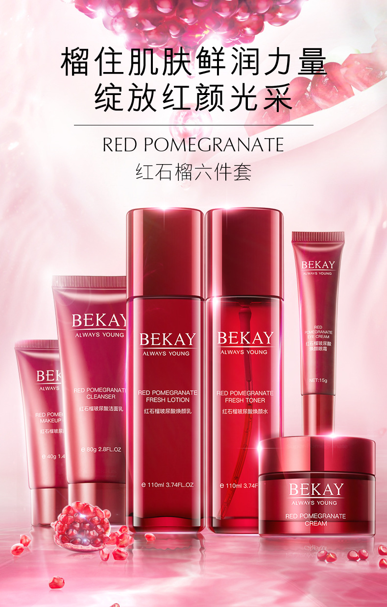 碧琳红石榴六件套护肤品套装补水保湿提亮洗面奶水乳化妆品套盒