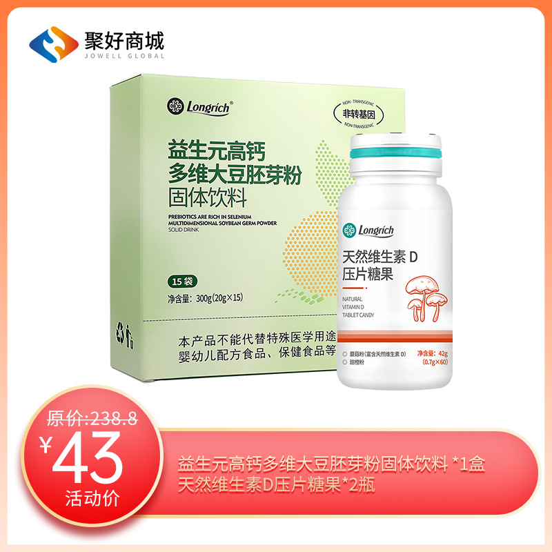 • 【保健组合二】益生元高钙多维大豆胚芽粉固体饮料*1+天然维生素D压片糖果*2