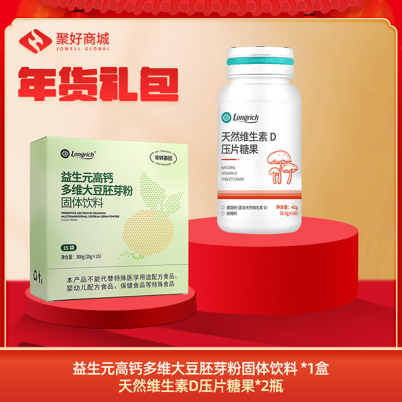 • 【年货礼包】益生元高钙多维大豆胚芽粉固体饮料*1+天然维生素D压片糖果*2
