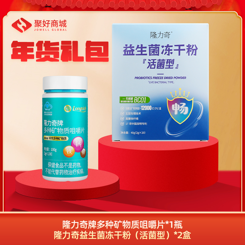 • 【年货礼包】隆力奇益生菌冻干粉(活菌型)*2+隆力奇牌多种矿物质咀嚼片*1