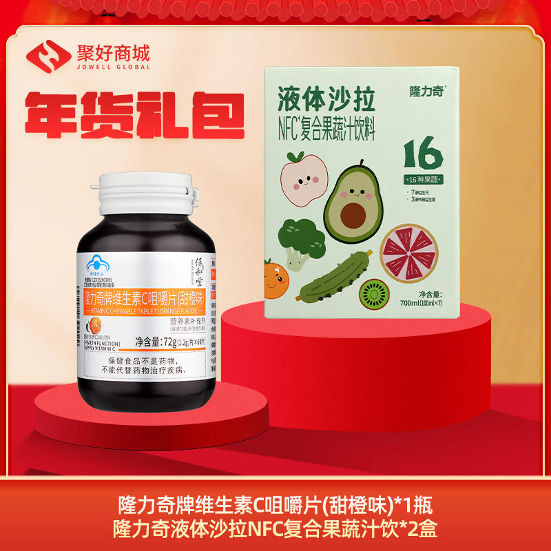 • 【年货组合】隆力奇液体沙拉NFC复合果蔬汁饮*2盒+隆力奇维生素C*1